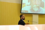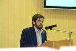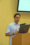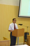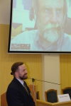 | Продолжение пленарного заседания: доклад представителя из Новосибирска, сотрудника университета г. Леон (Франция) к.ф.н. А. М. Лаврентьева. |